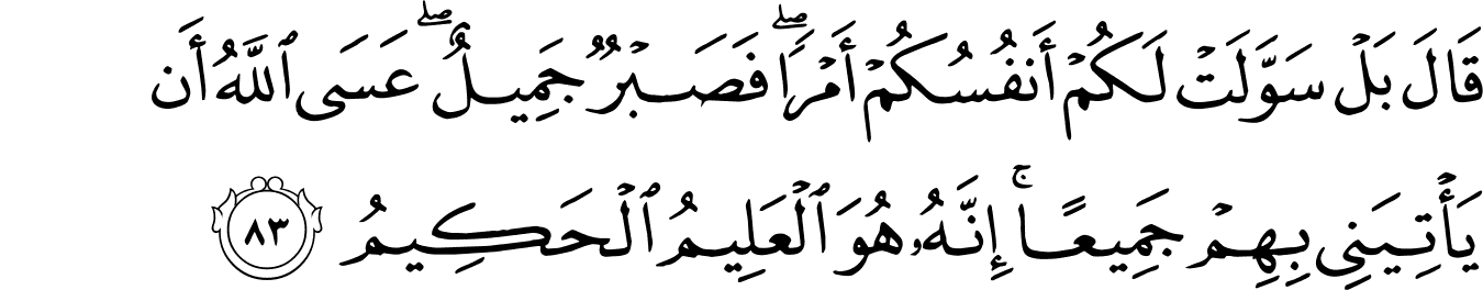 | 12:83:7 | فَصَبۡرٌ | فَصَبْرٌ | فَصَبْرٌ | فَصَبْرٌ | فَصَبْرٌ | فَصَبْرٌۭ | فصبرۭ | فَصَبْرࣱ | ﮮ | فَصَبْرࣱ | فَصَبْرٌ | فصبر | فَصَبۡرٞ |