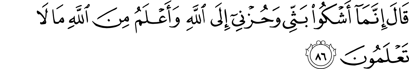 | 12:86:4 | بَثِّـىۡ | بَثِّیْ | بَثِّیْ | بَثِّيْ | بَثِّيْ | بَثِّى | بثى | بَثِّي | ﯻ | بَثِّي | بَثِّي | بثي | بَثِّي | بَثِّى | ﳊ | ﳊ |