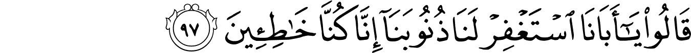 | 12:97:5 | ذُنُوۡبَنَاۤ | ذُنُوْبَنَاۤ | ذُنُوْبَنَاۤ | ذُنُوْبَنَا٘ | ذُنُوْبَنَا͏ٓ | ذُنُوبَنَآ | ذنوبنا | ذُنُوبَنَآ | ﭫ | ذُنُوبَنَآ | ذُنُوبَنَا | ذنوبنا | ذُنُوبَنَآ |