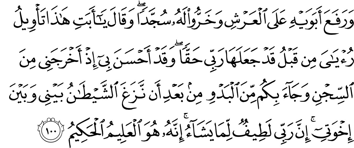 | 12:100:1 | وَرَفَعَ | وَرَفَعَ | وَرَفَعَ | وَرَفَعَ | وَرَفَعَ | وَرَفَعَ | ورفع | وَرَفَعَ | ﮊ | وَرَفَعَ | وَرَفَعَ | ورفع | وَرَفَعَ | وَرَفَعَ | ﱺ | ﱺ |
