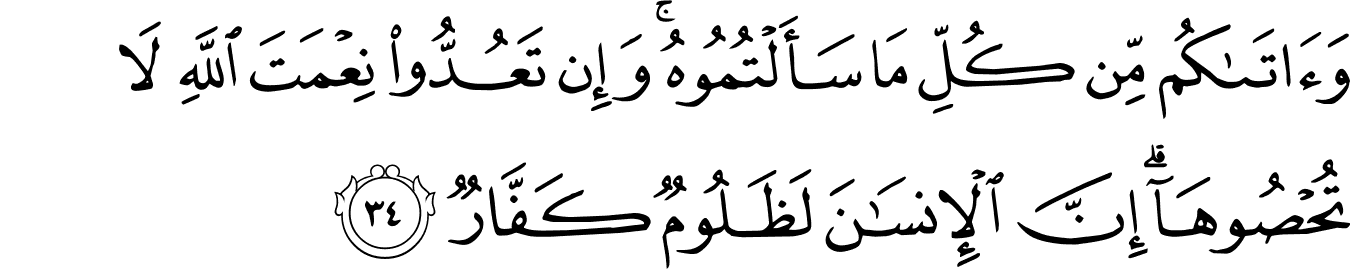 | 14:34:1 | وَاٰتٰٮكُمۡ | وَاٰتٰىكُمْ | وَاٰتٰىكُمْ | وَاٰتٰىكُمْ | وَاٰتٰىكُمْ | وَءَاتَىٰكُم | واتىكم | وَءَاتَىٰكُم | ﭑ | وَءَاتَىٰكُم | وَآتَاكُم | واتاكم | وَءَاتَىٰكُم |