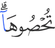| 14:34:11 | تُحۡصُوۡهَا ؕ | تُحْصُوْهَا ؕ | تُحْصُوْهَا ؕ | تُحْصُوْهَاﵧ | تُحْصُوْهَاؕ | تُحْصُوهَآ ۗ | تحصوها ۗ | تُحْصُوهَآۗ | ﭜﭝ | تُحْصُوهَآۗ | تُحْصُوهَا ۗ | تحصوها | تُحۡصُوهَآۗ |