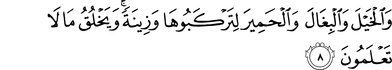 | 16:8:1 | وَّالۡخَـيۡلَ | وَّالْخَیْلَ | وَّالْخَیْلَ | وَّالْخَيْلَ | وَّالْخَيْلَ | وَٱلْخَيْلَ | والخيل | وَٱلْخَيْلَ | ﭡ | وَٱلْخَيْلَ | وَالْخَيْلَ | والخيل | وَٱلۡخَيۡلَ |
