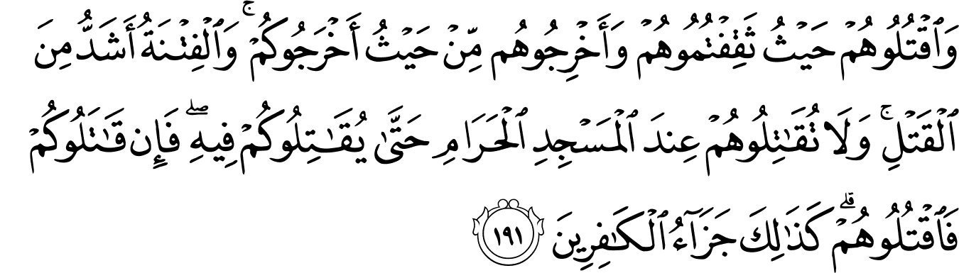 | 2:191:1 | وَاقۡتُلُوۡهُمۡ | وَاقْتُلُوْهُمْ | وَاقْتُلُوْهُمْ | وَاقْتُلُوْهُمْ | وَاقْتُلُوْهُمْ | وَٱقْتُلُوهُمْ | وَٱقْتُلُوهُمْ | ﭑ | وَٱقْتُلُوهُمْ | وَاقْتُلُوهُمْ | وَٱقۡتُلُوهُمۡ |