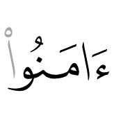 | 16:99:7 | اٰمَنُوۡا | اٰمَنُوْا | اٰمَنُوْا | اٰمَنُوْا | اٰمَنُوْا | ءَامَنُوا۟ | امنوا۟ | ءَامَنُوا۟ | ﮬ | ءَامَنُوا۟ | آمَنُوا | امنوا | ءَامَنُواْ |