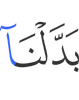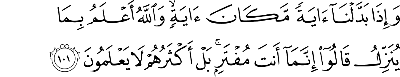 | 16:101:2 | بَدَّلۡنَاۤ | بَدَّلْنَاۤ | بَدَّلْنَاۤ | بَدَّلْنَا٘ | بَدَّلْنَا͏ٓ | بَدَّلْنَآ | بدلنا | بَدَّلْنَآ | ﯝ | بَدَّلْنَآ | بَدَّلْنَا | بدلنا | بَدَّلۡنَآ |