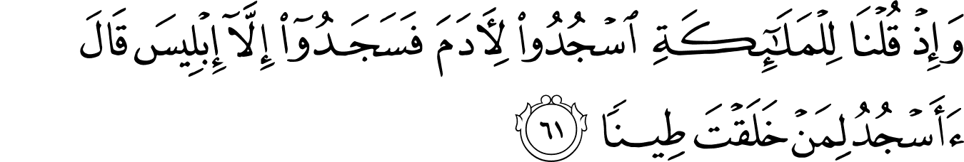 | 17:61:1 | وَاِذۡ | وَاِذْ | وَاِذْ | وَاِذْ | وَاِذْ | وَإِذْ | واذ | وَإِذْ | ﮅ | وَإِذْ | وَإِذْ | واذ | وَإِذۡ | وَإِذۡ | ﱵ | ﱵ |