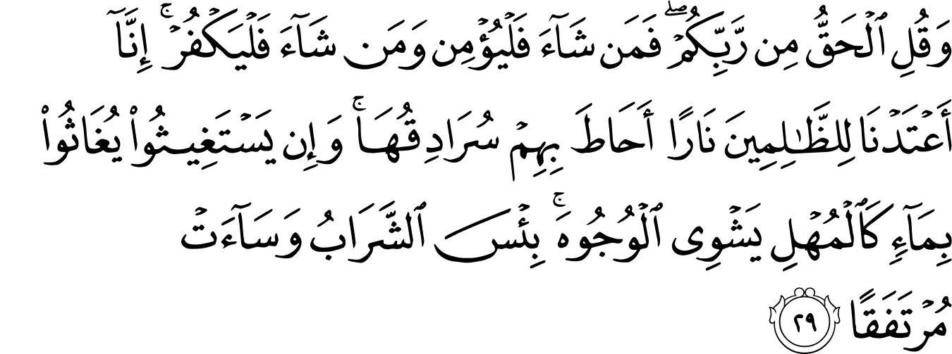 | 18:29:1 | وَقُلِ | وَقُلِ | وَقُلِ | وَقُلِ | وَقُلِ | وَقُلِ | وقل | وَقُلِ | ﭲ | وَقُلِ | وَقُلِ | وقل | وَقُلِ | وَقُلِ | ﱢ | ﱢ |