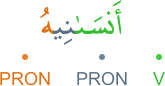 | 18:63:11 | اَنۡسٰٮنِيۡهُ | اَنْسٰىنِیْهُ | اَنْسٰىنِیْهُ | اَنْسٰىنِيْهُ | اَنْسٰىنِيْهُ | أَنسَىٰنِيهُ | انسىنيه | أَنسَىٰنِيهُ | ﭨ | أَنسَىٰنِيهُ | أَنسَانِيهُ | انسانيه | أَنسَىٰنِيهُ |