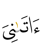 | 19:30:5 | اٰتٰٮنِىَ | اٰتٰىنِیَ | اٰتٰىنِیَ | اٰتٰىنِيَ | اٰتٰىنِيَ | ءَاتَىٰنِىَ | اتىنى | ءَاتَىٰنِيَ | ﮍ | ءَاتَىٰنِيَ | آتَانِيَ | اتاني | ءَاتَىٰنِيَ |