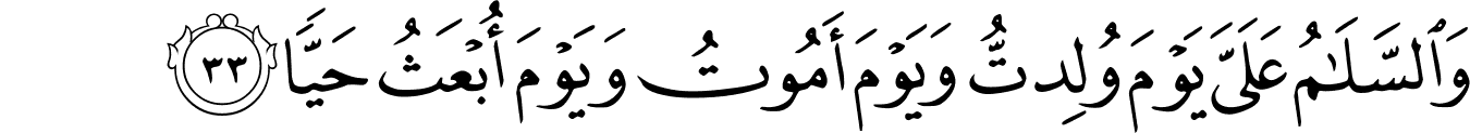 | 19:33:1 | وَالسَّلٰمُ | وَالسَّلٰمُ | وَالسَّلٰمُ | وَالسَّلٰمُ | وَالسَّلٰمُ | وَٱلسَّلَـٰمُ | والسلـم | وَٱلسَّلَٰمُ | ﮥ | وَٱلسَّلَٰمُ | وَالسَّلَامُ | والسلام | وَٱلسَّلَٰمُ |