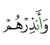 | 19:39:1 | وَاَنۡذِرۡهُمۡ | وَاَنْذِرْهُمْ | وَاَنْذِرْهُمْ | وَاَنْذِرْهُمْ | وَاَنْذِرْهُمْ | وَأَنذِرْهُمْ | وانذرهم | وَأَنذِرْهُمْ | ﭑ | وَأَنذِرْهُمْ | وَأَنذِرْهُمْ | وانذرهم | وَأَنذِرۡهُمۡ |