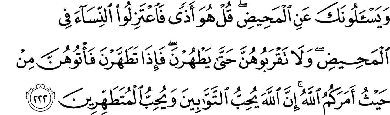| 2:222:3 | الۡمَحِيۡضِۙ | الْمَحِیْضِ ؕ | الْمَحِیْضِ ؕ | الْمَحِيْضِﵧ | الْمَحِيْضِؕ | ٱلْمَحِيضِ ۖ | ٱلْمَحِيضِۖ | ﮢﮣ | ٱلْمَحِيضِۖ | الْمَحِيضِ ۖ | ٱلۡمَحِيضِۖ |