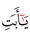 | 19:43:1 | يٰۤـاَبَتِ | یٰۤاَبَتِ | یٰۤاَبَتِ | يٰ٘اَبَتِ | يٰٓاَبَتِ | يَـٰٓأَبَتِ | يـابت | يَٰٓأَبَتِ | ﮁ | يَٰٓأَبَتِ | يَا أَبَتِ | يا ابت | يَٰٓأَبَتِ |