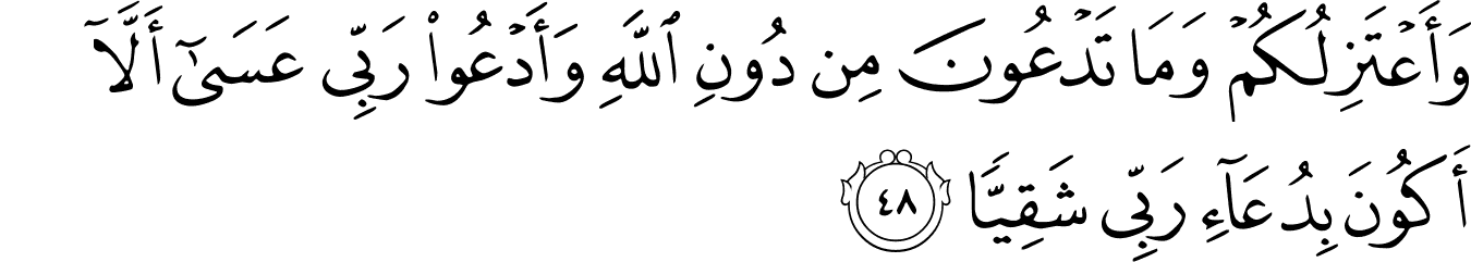 | 19:48:1 | وَ اَعۡتَزِلُـكُمۡ | وَاَعْتَزِلُكُمْ | وَاَعْتَزِلُكُمْ | وَاَعْتَزِلُكُمْ | وَاَعْتَزِلُكُمْ | وَأَعْتَزِلُكُمْ | واعتزلكم | وَأَعْتَزِلُكُمْ | ﯣ | وَأَعْتَزِلُكُمْ | وَأَعْتَزِلُكُمْ | واعتزلكم | وَأَعۡتَزِلُكُمۡ | وَأَعۡتَزِلُكُمۡ | ﲲ | ﲲ |