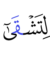 | 20:2:5 | لِتَشۡقٰٓى ۙ | لِتَشْقٰۤی | لِتَشْقٰۤی | لِتَشْقٰ٘ي | لِتَشْقٰٓي | لِتَشْقَىٰٓ | لِتَشْقَىٰٓ | ﭻ | لِتَشْقَىٰٓ | لِتَشْقَىٰ | لِتَشۡقَىٰٓ | لِتَشۡقَىٰٓ | ﱫ | ﱫ |