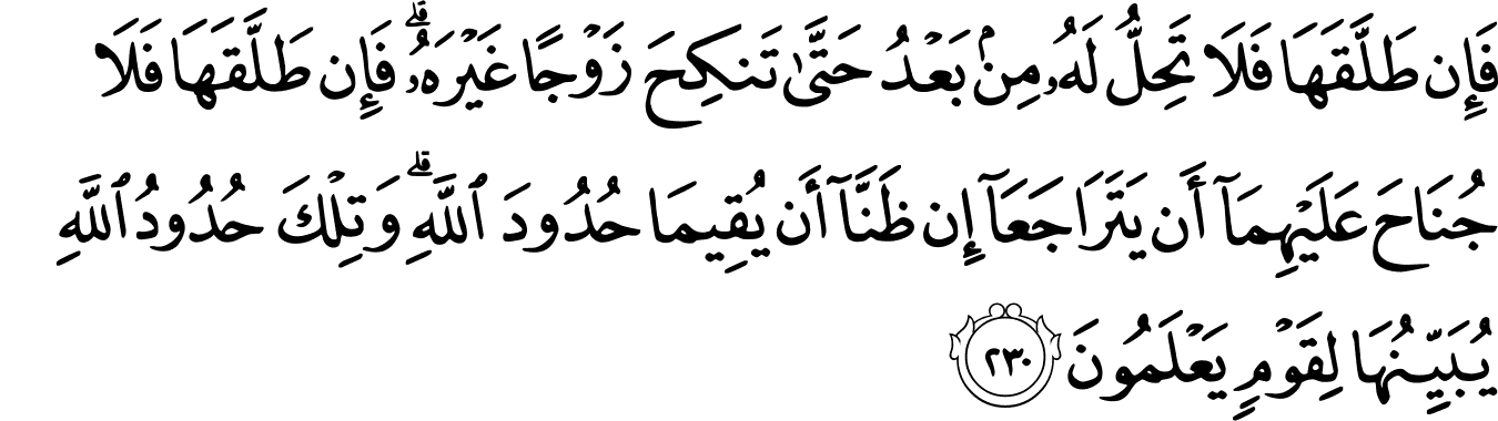 | 2:230:13 | طَلَّقَهَا | طَلَّقَهَا | طَلَّقَهَا | طَلَّقَهَا | طَلَّقَهَا | طَلَّقَهَا | طَلَّقَهَا | ﰈ | طَلَّقَهَا | طَلَّقَهَا | طَلَّقَهَا |
