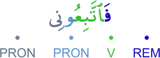 | 20:90:14 | فَاتَّبِعُوۡنِىۡ | فَاتَّبِعُوْنِیْ | فَاتَّبِعُوْنِیْ | فَاتَّبِعُوْنِيْ | فَاتَّبِعُوْنِيْ | فَٱتَّبِعُونِى | فَٱتَّبِعُونِي | ﭹ | فَٱتَّبِعُونِي | فَاتَّبِعُونِي | فَٱتَّبِعُونِي |