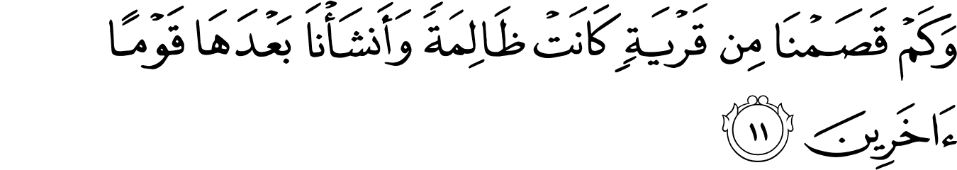 | 21:11:2 | قَصَمۡنَا | قَصَمْنَا | قَصَمْنَا | قَصَمْنَا | قَصَمْنَا | قَصَمْنَا | قَصَمْنَا | ﭒ | قَصَمْنَا | قَصَمْنَا | قَصَمۡنَا | قَصَمۡنَا | ﱂ | ﱂ |