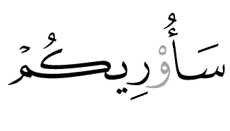 | 21:37:5 | سَاُورِيۡكُمۡ | سَاُورِیْكُمْ | سَاُورِیْكُمْ | سَاُورِيْكُمْ | سَاُورِيْكُمْ | سَأُو۟رِيكُمْ | سَأُو۟رِيكُمْ | ﭨ | سَأُو۟رِيكُمْ | سَأُرِيكُمْ | سَأُوْرِيكُمۡ |