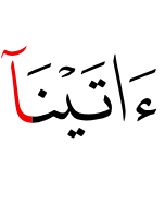 | 21:51:2 | اٰتَيۡنَاۤ | اٰتَیْنَاۤ | اٰتَیْنَاۤ | اٰتَيْنَا٘ | اٰتَيْنَا͏ٓ | ءَاتَيْنَآ | ءَاتَيْنَآ | ﮞ | ءَاتَيْنَآ | آتَيْنَا | ءَاتَيۡنَآ |