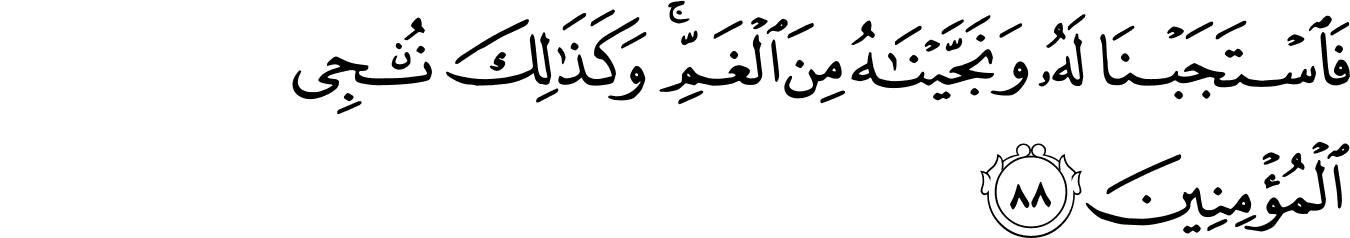 | 21:88:1 | فَاسۡتَجَبۡنَا | فَاسْتَجَبْنَا | فَاسْتَجَبْنَا | فَاسْتَجَبْنَا | فَاسْتَجَبْنَا | فَٱسْتَجَبْنَا | فَٱسْتَجَبْنَا | ﮦ | فَٱسْتَجَبْنَا | فَاسْتَجَبْنَا | فَٱسۡتَجَبۡنَا |