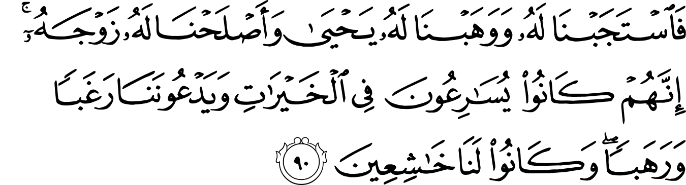 | 21:90:1 | فَاسۡتَجَبۡنَا | فَاسْتَجَبْنَا | فَاسْتَجَبْنَا | فَاسْتَجَبْنَا | فَاسْتَجَبْنَا | فَٱسْتَجَبْنَا | فَٱسْتَجَبْنَا | ﯝ | فَٱسْتَجَبْنَا | فَاسْتَجَبْنَا | فَٱسۡتَجَبۡنَا |