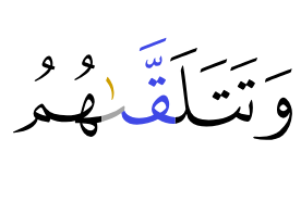 | 21:103:5 | وَتَتَلَقّٰٮهُمُ | وَتَتَلَقّٰىهُمُ | وَتَتَلَقّٰىهُمُ | وَتَتَلَقّٰىهُمُ | وَتَتَلَقّٰىهُمُ | وَتَتَلَقَّىٰهُمُ | وَتَتَلَقَّىٰهُمُ | ﭠ | وَتَتَلَقَّىٰهُمُ | وَتَتَلَقَّاهُمُ | وَتَتَلَقَّىٰهُمُ |