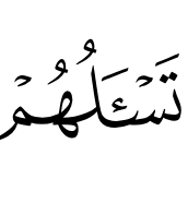 | 23:72:2 | تَسۡــَٔـلُهُمۡ | تَسْـَٔلُهُمْ | تَسْـَٔلُهُمْ | تَسْـَٔلُهُمْ | تَسْـَٔلُهُمْ | تَسْـَٔلُهُمْ | تَسْـَٔلُهُمْ | ﯶ | تَسْـَٔلُهُمْ | تَسْأَلُهُمْ | تَسۡـَٔلُهُمۡ | تَسۡــَٔلُهُمۡ | ﳄ | ﳄ |
