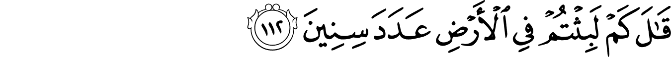 | 23:112:2 | كَمۡ | كَمْ | كَمْ | كَمْ | كَمْ | كَمْ | كَمْ | ﮓ | كَمْ | كَمْ | كَمۡ | كَمۡ | ﲃ | ﲃ |