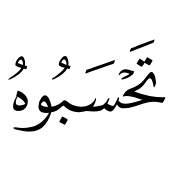 | 24:11:8 | تَحۡسَبُوۡهُ | تَحْسَبُوْهُ | تَحْسَبُوْهُ | تَحْسَبُوْهُ | تَحْسَبُوْهُ | تَحْسَبُوهُ | تَحْسَبُوهُ | ﭙ | تَحْسَبُوهُ | تَحْسَبُوهُ | تَحۡسَبُوهُ | تَحۡسَبُوهُ | ﱉ | ﱉ |