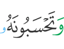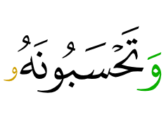 | 24:15:11 | وَّتَحۡسَبُوۡنَهٗ | وَّتَحْسَبُوْنَهٗ | وَّتَحْسَبُوْنَهٗ | وَّتَحْسَبُوْنَهٗ | وَّتَحْسَبُوْنَهٗ | وَتَحْسَبُونَهُۥ | وَتَحْسَبُونَهُۥ | ﮩ | وَتَحْسَبُونَهُۥ | وَتَحْسَبُونَهُ | وَتَحۡسَبُونَهُۥ |