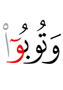 | 24:31:71 | وَتُوۡبُوۡۤا | وَتُوْبُوْۤا | وَتُوْبُوْۤا | وَتُوْبُوْ٘ا | وَتُوْبُوْٓا | وَتُوبُوٓا۟ | وَتُوبُوٓا۟ | ﯻ | وَتُوبُوٓا۟ | وَتُوبُوا | وَتُوبُوٓاْ |