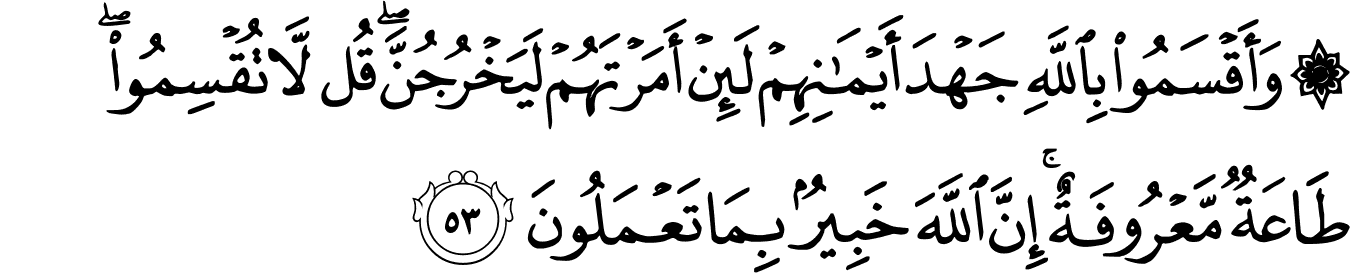 | 24:53:1 | ۞ وَاَقۡسَمُوۡا | وَاَقْسَمُوْا | وَاَقْسَمُوْا | وَاَقْسَمُوْا | وَاَقْسَمُوْا | ۞ وَأَقْسَمُوا۟ | ۞وَأَقْسَمُوا۟ | ﰄﰅ | ۞وَأَقْسَمُوا۟ | ۞ وَأَقْسَمُوا | ۞ وَأَقۡسَمُواْ |