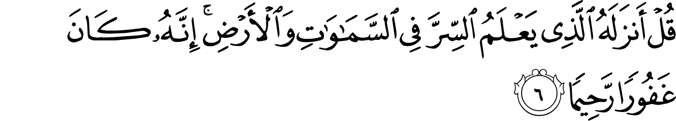 | 25:6:1 | قُلۡ | قُلْ | قُلْ | قُلْ | قُلْ | قُلْ | قُلْ | ﮄ | قُلْ | قُلْ | قُلۡ | قُلۡ | ﱴ | ﱴ |