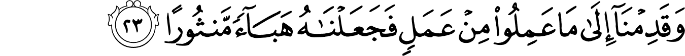 | 25:23:1 | وَقَدِمۡنَاۤ | وَقَدِمْنَاۤ | وَقَدِمْنَاۤ | وَقَدِمْنَا٘ | وَقَدِمْنَا͏ٓ | وَقَدِمْنَآ | وَقَدِمْنَآ | ﭲ | وَقَدِمْنَآ | وَقَدِمْنَا | وَقَدِمۡنَآ |