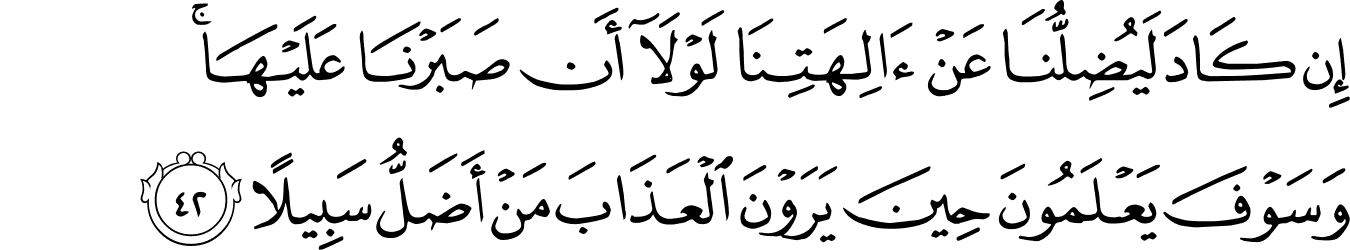 | 25:42:3 | لَيُضِلُّنَا | لَیُضِلُّنَا | لَیُضِلُّنَا | لَيُضِلُّنَا | لَيُضِلُّنَا | لَيُضِلُّنَا | لَيُضِلُّنَا | ﯝ | لَيُضِلُّنَا | لَيُضِلُّنَا | لَيُضِلُّنَا | لَيُضِلُّنَا | ﲬ | ﲬ |