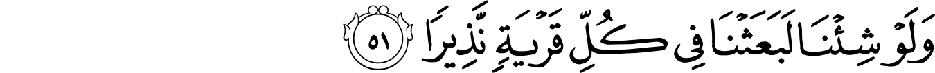 | 25:51:3 | لَبَـعَثۡنَا | لَبَعَثْنَا | لَبَعَثْنَا | لَبَعَثْنَا | لَبَعَثْنَا | لَبَعَثْنَا | لَبَعَثْنَا | ﮬ | لَبَعَثْنَا | لَبَعَثْنَا | لَبَعَثۡنَا | لَبَعَثۡنَا | ﲛ | ﲛ |