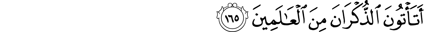 | 26:165:2 | الذُّكۡرَانَ | الذُّكْرَانَ | الذُّكْرَانَ | الذُّكْرَانَ | الذُّكْرَانَ | ٱلذُّكْرَانَ | الذكران | ٱلذُّكْرَانَ | ﭵ | ٱلذُّكْرَانَ | الذُّكْرَانَ | الذكران | ٱلذُّكۡرَانَ |
