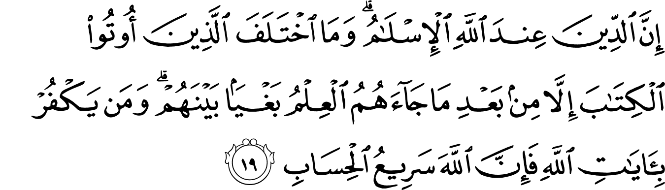 | 3:19:5 | الۡاِسۡلَامُ | الْاِسْلَامُ ۫ | الْاِسْلَامُ ۫ | الْاِسْلَامُﵴ | الْاِسْلَامُࣞ | ٱلْإِسْلَـٰمُ ۗ | ٱلْإِسْلَٰمُۗ | ﭼﭽ | ٱلْإِسْلَٰمُۗ | الْإِسْلَامُ ۗ | ٱلۡإِسۡلَٰمُۗ |