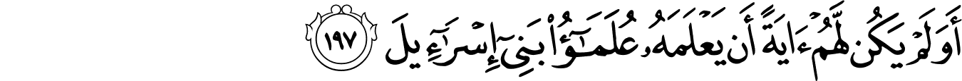 | 26:197:1 | اَوَلَمۡ | اَوَلَمْ | اَوَلَمْ | اَوَلَمْ | اَوَلَمْ | أَوَلَمْ | اولم | أَوَلَمْ | ﮬ | أَوَلَمْ | أَوَلَمْ | اولم | أَوَلَمۡ | أَوَلَمۡ | ﲜ | ﲜ |