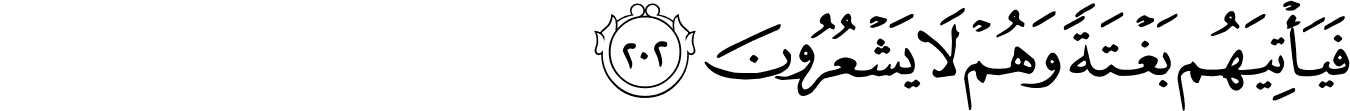 | 26:202:2 | بَغۡتَةً | بَغْتَةً | بَغْتَةً | بَغْتَةً | بَغْتَةً | بَغْتَةًۭ | بغتةۭ | بَغْتَةࣰ | ﯳ | بَغْتَةࣰ | بَغْتَةً | بغتة | بَغۡتَةٗ |