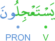 | 26:204:2 | يَسۡتَعۡجِلُوۡنَ | یَسْتَعْجِلُوْنَ | یَسْتَعْجِلُوْنَ | يَسْتَعْجِلُوْنَ | يَسْتَعْجِلُوْنَ | يَسْتَعْجِلُونَ | يستعجلون | يَسْتَعْجِلُونَ | ﯾ | يَسْتَعْجِلُونَ | يَسْتَعْجِلُونَ | يستعجلون | يَسۡتَعۡجِلُونَ |