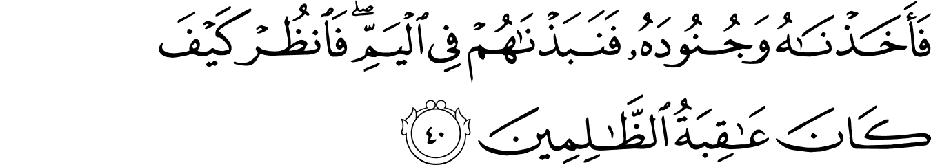 | 28:40:1 | فَاَخَذۡنٰهُ | فَاَخَذْنٰهُ | فَاَخَذْنٰهُ | فَاَخَذْنٰهُ | فَاَخَذْنٰهُ | فَأَخَذْنَـٰهُ | فاخذنـه | فَأَخَذْنَٰهُ | ﮠ | فَأَخَذْنَٰهُ | فَأَخَذْنَاهُ | فاخذناه | فَأَخَذۡنَٰهُ |