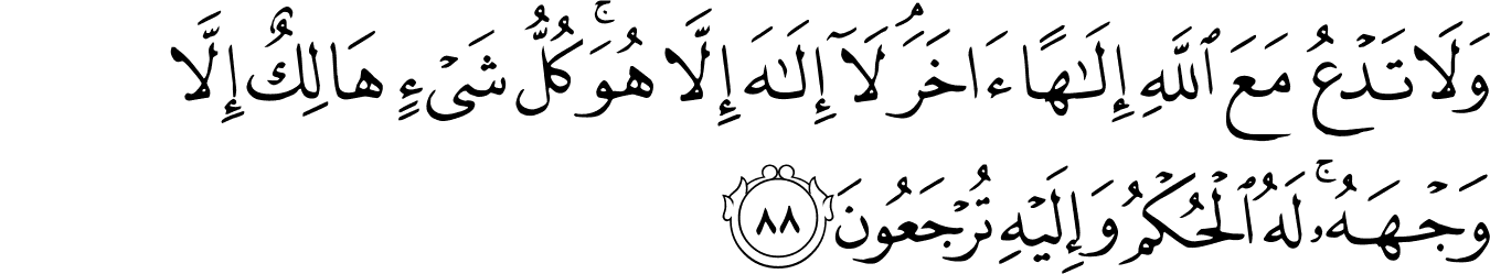 | 28:88:5 | اِلٰهًا | اِلٰهًا | اِلٰهًا | اِلٰهًا | اِلٰهًا | إِلَـٰهًا | الـها | إِلَٰهًا | ﮎ | إِلَٰهًا | إِلَٰهًا | الاها | إِلَٰهًا |