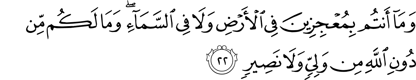 | 29:22:3 | بِمُعۡجِزِيۡنَ | بِمُعْجِزِیْنَ | بِمُعْجِزِیْنَ | بِمُعْجِزِيْنَ | بِمُعْجِزِيْنَ | بِمُعْجِزِينَ | بمعجزين | بِمُعْجِزِينَ | ﯦ | بِمُعْجِزِينَ | بِمُعْجِزِينَ | بمعجزين | بِمُعۡجِزِينَ |