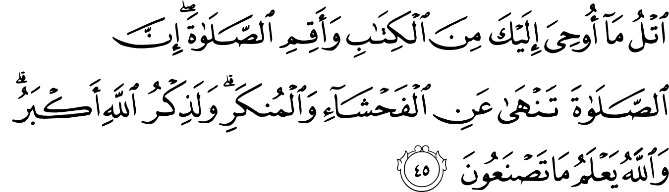 | 29:45:8 | الصَّلٰوةَ ؕ | الصَّلٰوةَ ؕ | الصَّلٰوةَ ؕ | الصَّلٰوةَﵧ | الصَّلٰوةَؕ | ٱلصَّلَوٰةَ ۖ | الصلوة | ٱلصَّلَوٰةَۖ | ﯡﯢ | ٱلصَّلَوٰةَۖ | الصَّلَاةَ ۖ | الصلاة | ٱلصَّلَوٰةَۖ |