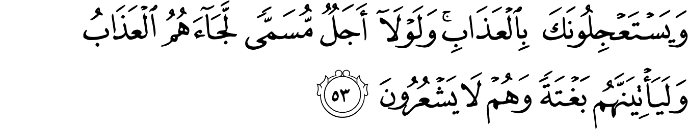 | 29:53:7 | الۡعَذَابُؕ | الْعَذَابُ ؕ | الْعَذَابُ ؕ | الْعَذَابُﵧ | الْعَذَابُؕ | ٱلْعَذَابُ | العذاب | ٱلْعَذَابُ | ﭘ | ٱلْعَذَابُۚ | الْعَذَابُ | العذاب | ٱلۡعَذَابُۚ |