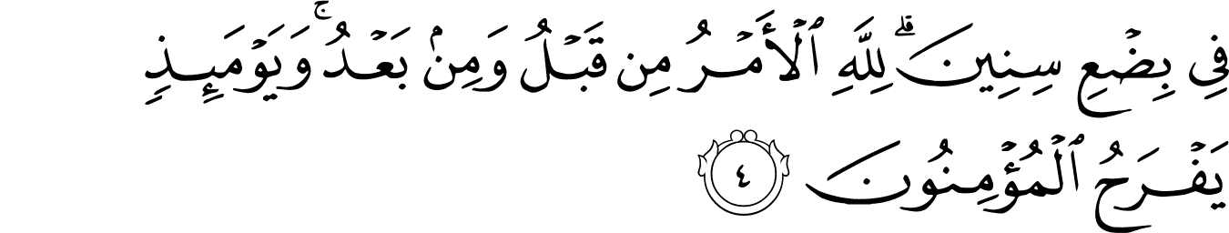 | 30:4:5 | الۡاَمۡرُ | الْاَمْرُ | الْاَمْرُ | الْاَمْرُ | الْاَمْرُ | ٱلْأَمْرُ | الامر | ٱلْأَمْرُ | ﯟ | ٱلْأَمْرُ | الْأَمْرُ | الامر | ٱلۡأَمۡرُ |
