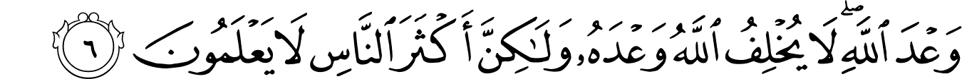 | 30:6:6 | وَعۡدَهٗ | وَعْدَهٗ | وَعْدَهٗ | وَعْدَهٗ | وَعْدَهٗ | وَعْدَهُۥ | وعده | وَعْدَهُۥ | ﭗ | وَعْدَهُۥ | وَعْدَهُ | وعده | وَعۡدَهُۥ |